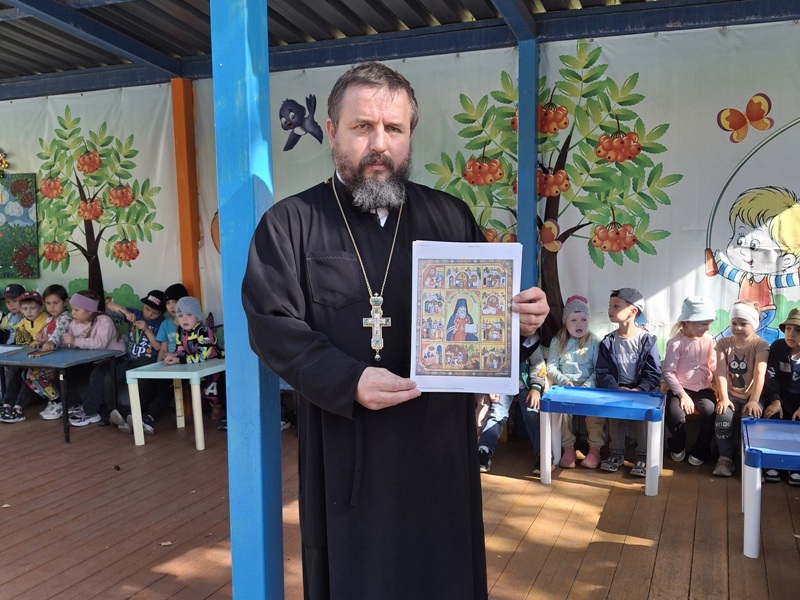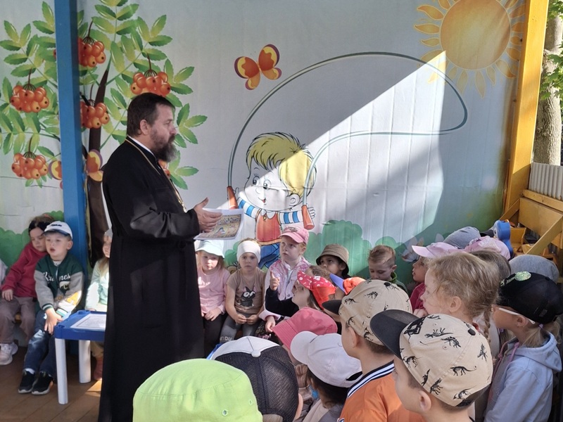 22 сентября 2025 г. настоятель храма преподобного Серафима Саровского г. Липецка протоиерей Сергий Гришин провел беседу с воспитанниками детского сада №25 г. Липецка.