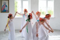 В продолжение темы о временах года на сцену вышли ребята, которые рассказали всем о церковном календаре. Они держали в руках иконы главных церковных праздников и поведали о них зрителям в стихотворной форме.