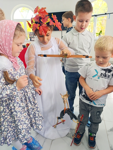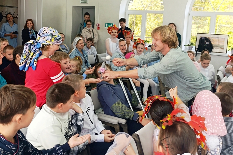 Затем ребят ждал особый сюрприз: кукольное представление, спектакль-мастер-класс «Балаган пустяков». Актер и режиссер «Театра под деревом» Иван Карпов познакомил детей с волшебным миром кукол.