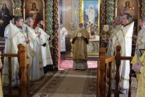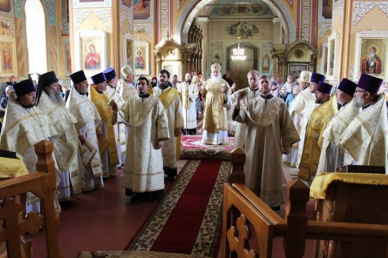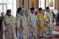 Его Высокопреосвященству сослужили: протоиерей Василий Бильчук, настоятель кафедрального собора Рождества Христова г. Липецка; архимандрит Герман (Ледин), благочинный храмов Добровского церковного округа; протоиереи: Виталий Диесперов, благочинный храмов 1-го Липецкого церковного округа; Константин Гришин, настоятель храма; Владимир Сельцов, настоятель храма Всех святых, в церкви Русской просиявших, г. Липецка; Сергий Гришин, настоятель храма прп. Серафима Саровского г. Липецка; Всеволод Бойко, настоятель храма Покрова Пресвятой Богородицы г. Липецка; иеромонах Пантелеимон (Сафронов), секретарь Архиерейского и Епархиального советов, настоятель храма Преображения Господня с. Доброе; иереи: Алексий Шумаков, Филипп Волокитин, Виктор Кузьмин, клирики храма; диаконы: Андрей Кантарюк и Андрей Черепня, клирики кафедрального собора Рождества Христова г. Липецка; Павел Шарапов и Виктор Коростылев, клирики храма.