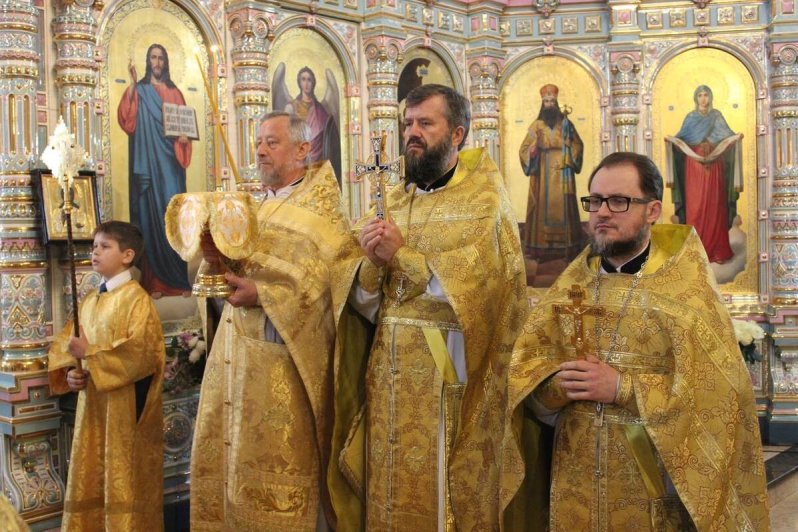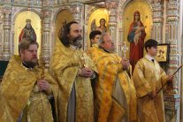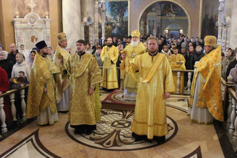Его Высокопреосвященству сослужили: протоиерей Василий Бильчук, настоятель собора; архимандрит Герман (Ледин), благочинный храмов Добровского церковного округа; протоиереи: Владимир Максимчук, ключарь собора; Алексий Носач; иереи: Сергий Гришанов, Александр Алешин; диаконы: Диомид Пигилев и Андрей Черепня, клирики собора.