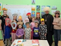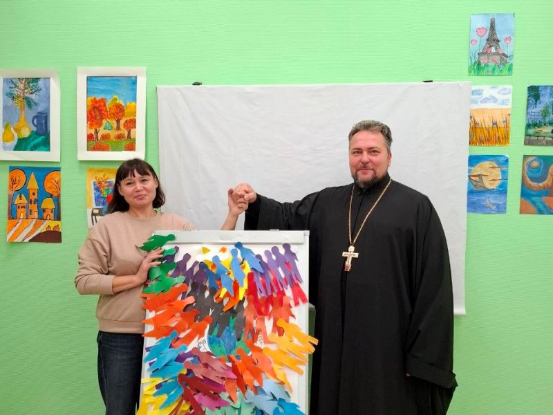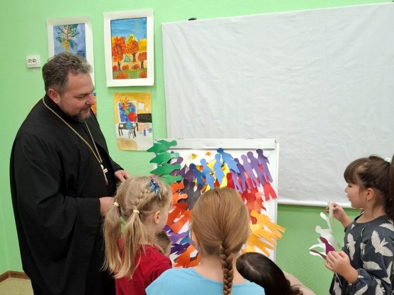 Встреча с детьми проходила в формате историко-познавательной программы «Мы вместе!», над реализацией которой священник работал вместе с сотрудницей Центра Куликовой Светланой Николаевной.