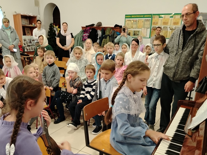 Учащиеся воскресной школы порадовали зрителей чтением стихов, исполнением музыкальных произведений на фортепиано, флейте, домбре, гитаре.