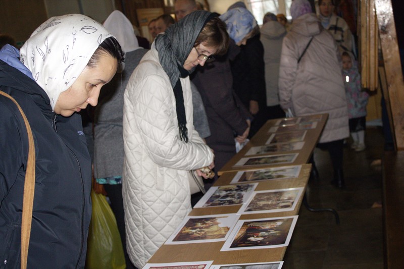 В притворе храма была организована выставка репродукций картин и других материалов, посвященных народному освободительному движению 1612 года и его героям: Патриарху Гермогену, усилиями которого возникло народное ополчениев эпоху Смутного времени; Кузьме Минину и князю Дмитрию Пожарскому, которые спасли народ от распада. На выставке была представлена Казанская икона Божией Матери, одна из самых почитаемых в России. Прихожане с интересом рассматривали репродукции, ярко описывающие важные исторические события.