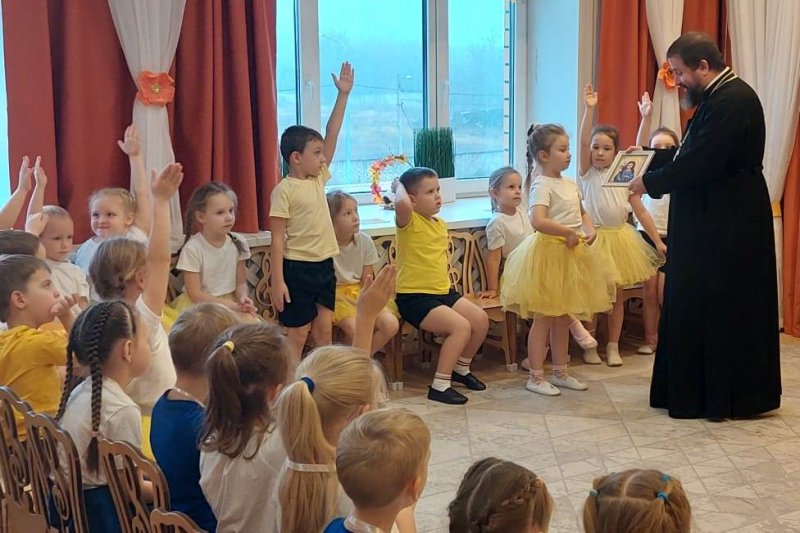 21 ноября 2025 г., в праздник Собора Архистратига Михаила и прочих Небесных Сил бесплотных, настоятель храма преподобного Серафима Саровского г. Липецка протоиерей Сергий Гришин провел встречу с воспитанниками ДОУ №4.