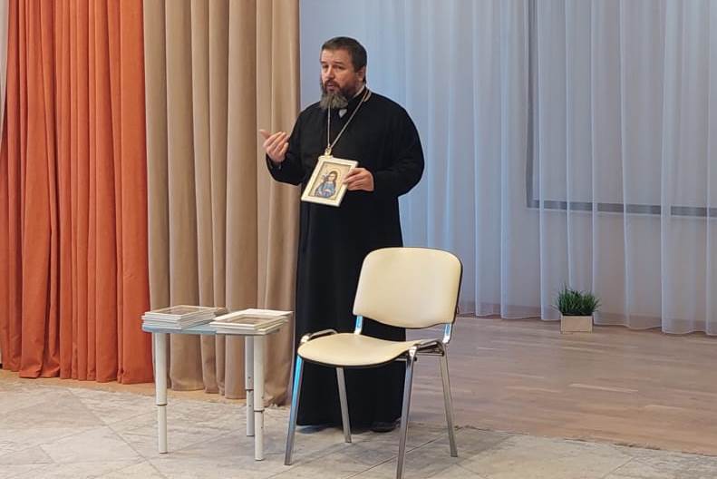 В завершение встречи отец Сергий ответил на вопросы участников встречи и вручил каждому иконки Божией Матери и раскраски с изображением Архистратига Михаила.
