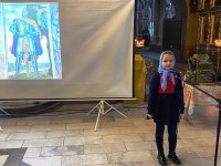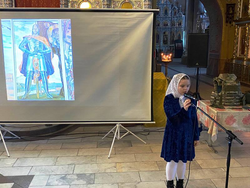 Директор воскресной школы Ирина Викторовна Заярина (сценарист и ведущая мероприятия) в видеосюжете представила историю Ледового побоища - битвы, произошедшей 5 апреля 1242 г. на льду Чудского озера. Это была победа над немецкими рыцарями-крестоносцами под предводительством Александра Невского. Победа в этом сражении остановила продвижение крестоносцев на Русь, укрепила границы и стала важным образцом военной тактики, которая показала превосходство русского военного искусства.