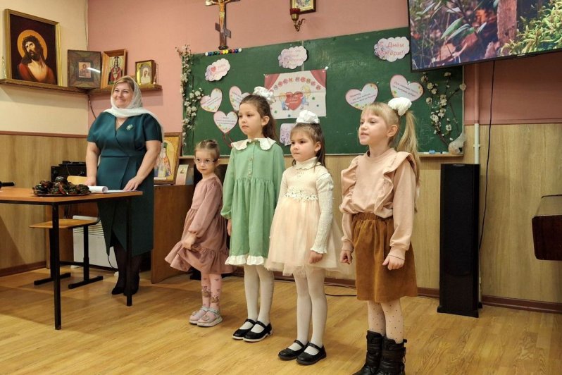 Воспитанники воскресной школы под руководством опытных педагогов подготовили концерт, в котором прозвучали стихи и песни о любви к ближним, которая, по слову святителя Иоанна Златоуста, есть «…глава, корень, источник и мать всех благ».