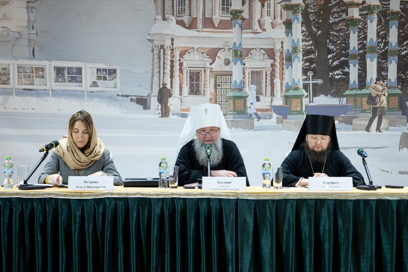 В качестве председателя конференции выступил митрополит Евгений, в качестве ведущего – игумен Иоанн (Рубин), заместитель председателя Синодального ОРОиК, кандидат богословия.