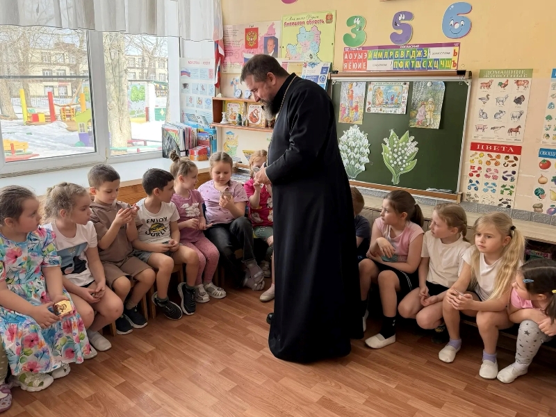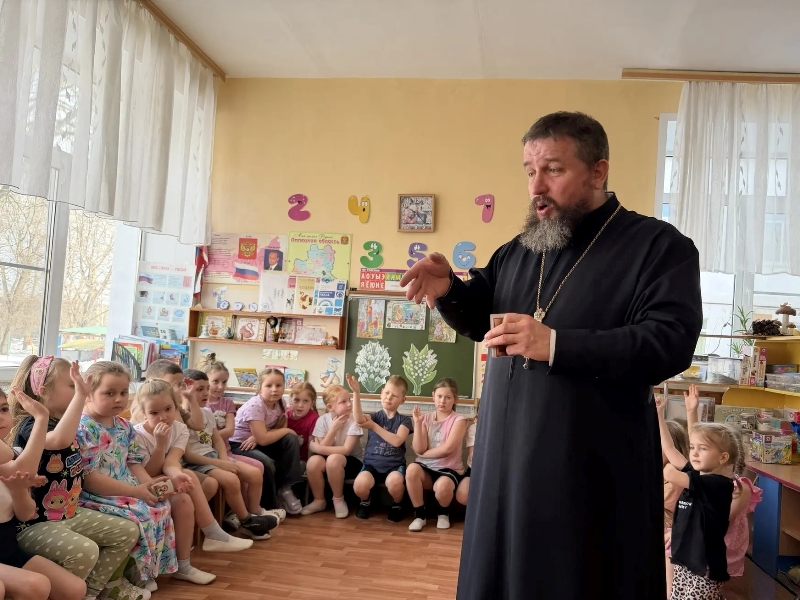 13 марта 2026 г. настоятель храма преподобного Серафима Саровского г. Липецка протоиерей Сергий Гришин провел беседу с воспитанниками детского сада №25 г. Липецка.