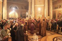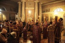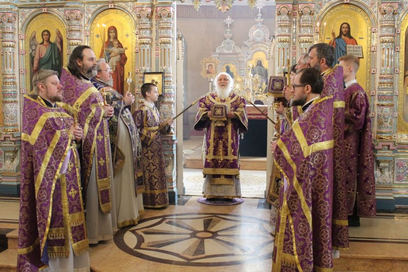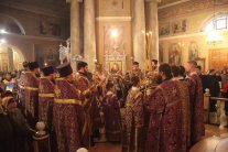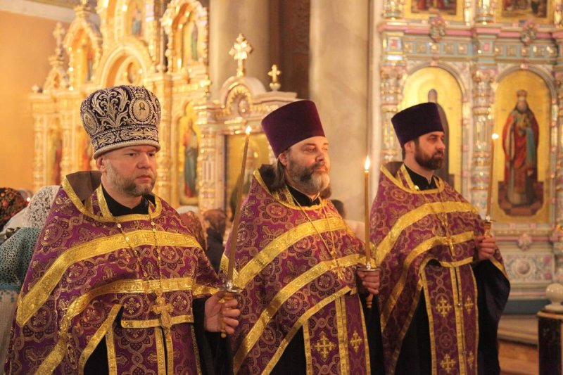 Его Высокопреосвященству сослужили: протоиерей Василий Бильчук, настоятель собора; архимандрит Герман (Ледин), благочинный храмов Добровского церковного округа (утро); протоиереи: Андрей Чичеринда, заштатный клирик Киевской епархии (вечер); Владимир Максимчук, ключарь собора; Алексий Носач; иереи: Сергий Гришанов, Виктор Архипкин (вечер), Александр Алешин; диаконы: Андрей Кантарюк и Диомид Пигилёв, клирики собора.
