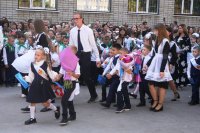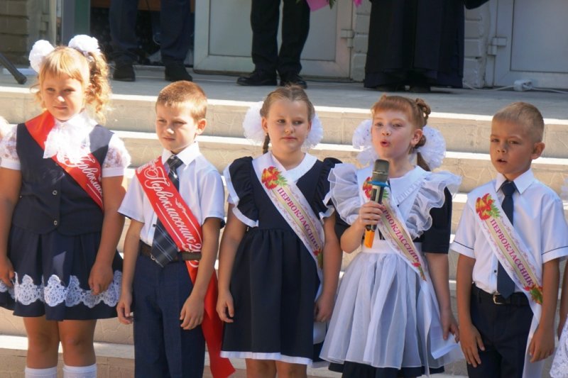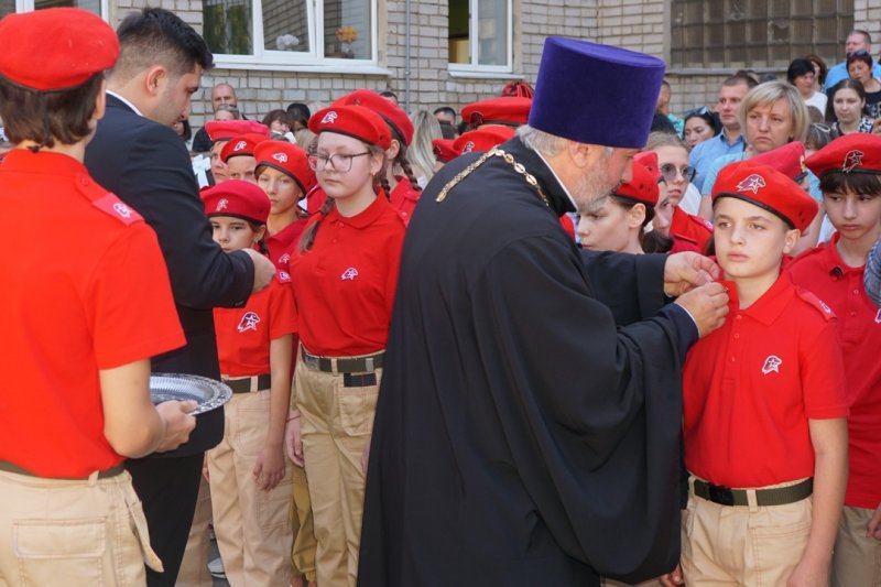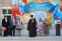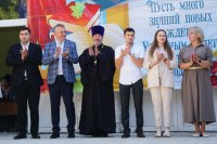 В день знаний руководитель Епархиального отдела по вопросам семьи, защиты материнства и детства принял участие в праздничной линейке в МБОУ СОШ № 47 г. Липецка