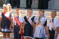 Одиннадцатиклассники декламировали стихи, исполнили прекрасный школьный вальс и по традиции вручили первоклассникам бумажные самолётики с пожеланиями.