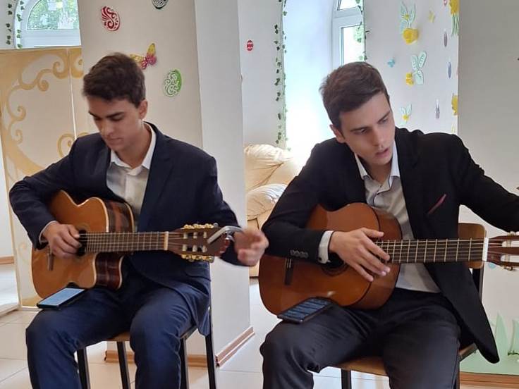 В этот памятный день дети под руководством опытных педагогов подготовили концерт, в котором прозвучали стихи и песни духовного содержания. Большое впечатление на зрителей произвело выступление алтарников храма – Алексея и Константина Гришиных.