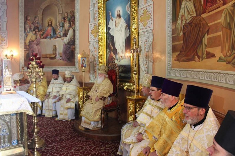 Его Высокопреосвященству сослужили: протоиерей Василий Бильчук, настоятель кафедрального собора Рождества Христова г. Липецка; архимандрит Герман (Ледин), благочинный храмов Добровского церковного округа; протоиереи: Виталий Диесперов, благочинный храмов 1-го Липецкого церковного округа; Константин Гришин, настоятель храма; Владимир Сельцов, настоятель храма Всех святых, в церкви Русской просиявших, г. Липецка; Сергий Гришин, настоятель храма прп. Серафима Саровского г. Липецка; Всеволод Бойко, настоятель храма Покрова Пресвятой Богородицы г. Липецка; иеромонах Пантелеимон (Сафронов), секретарь Архиерейского и Епархиального советов, настоятель храма Преображения Господня с. Доброе; иереи: Алексий Шумаков, Филипп Волокитин, Виктор Кузьмин, клирики храма; диаконы: Андрей Кантарюк и Андрей Черепня, клирики кафедрального собора Рождества Христова г. Липецка; Павел Шарапов и Виктор Коростылев, клирики храма.