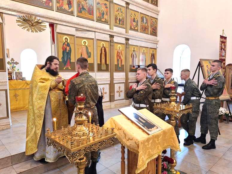 В завершение отец Александр привел слова святителя Григория Богослова: «Почитать матерь – дело святое. Но у всякого своя матерь, а общая для всех матерь – Родина», благословил юных кадетов и окропил святой водой.