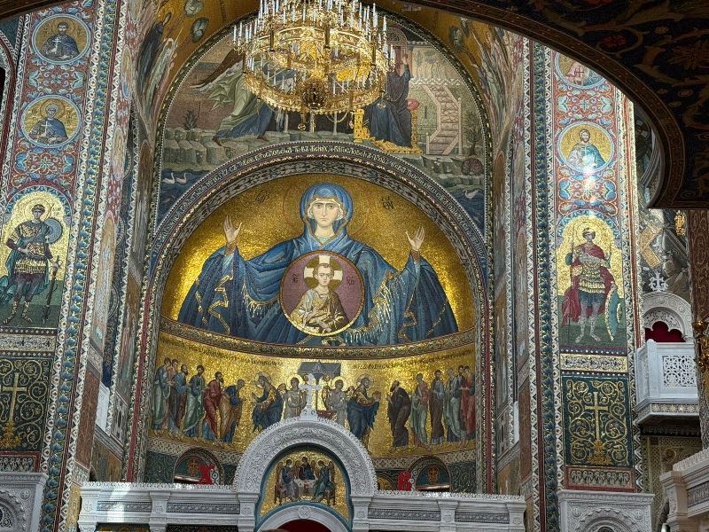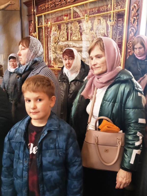 После монастырской трапезы паломники отправились в Троицкий собор, самый большой из действующих храмов обители, где приложились к мощам преподобного Серафима Саровского.
