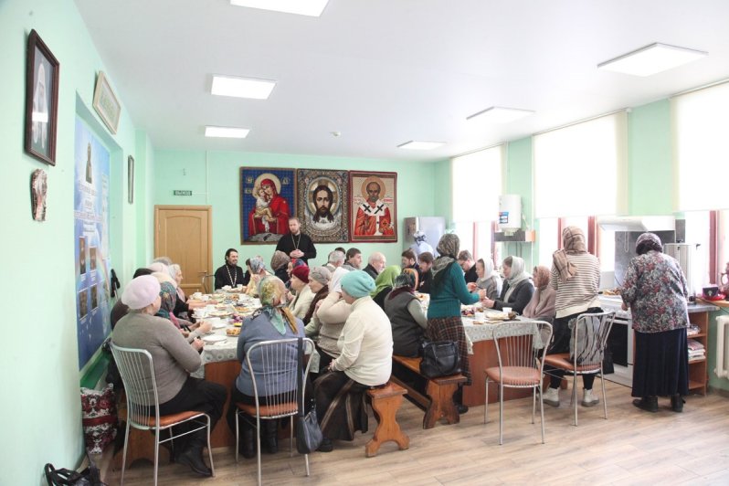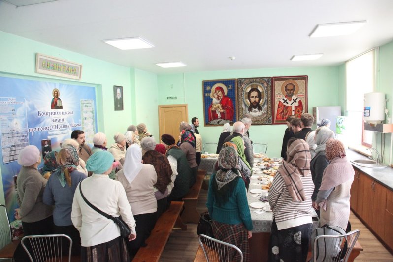 После этого собравшиеся направились в здание воскресной школы, названной в честь отца Иоанна, для участия в поминальной трапезе.