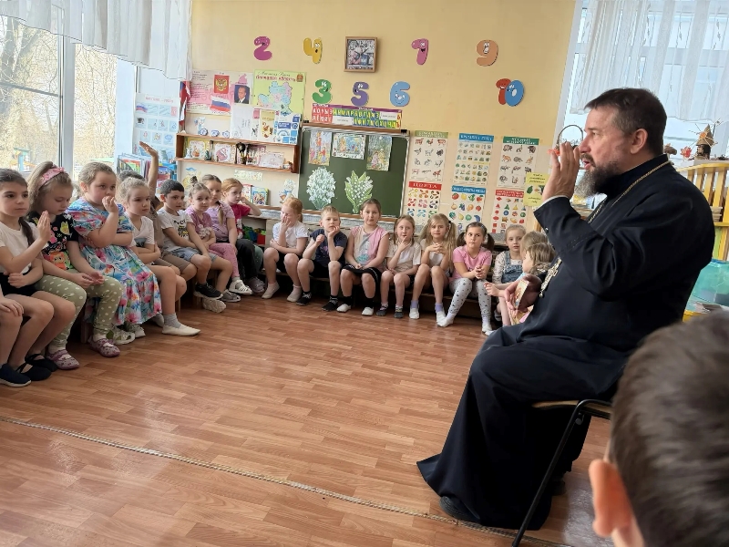 13 марта 2026 г. настоятель храма преподобного Серафима Саровского г. Липецка протоиерей Сергий Гришин провел беседу с воспитанниками детского сада №25 г. Липецка.