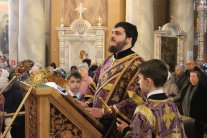 Его Высокопреосвященству сослужили: протоиерей Василий Бильчук, настоятель собора; архимандрит Герман (Ледин), благочинный храмов Добровского церковного округа (утро); протоиереи: Андрей Чичеринда, заштатный клирик Киевской епархии (вечер); Владимир Максимчук, ключарь собора; Алексий Носач; иереи: Сергий Гришанов, Виктор Архипкин (вечер), Александр Алешин; диаконы: Андрей Кантарюк и Диомид Пигилёв, клирики собора.