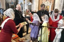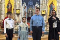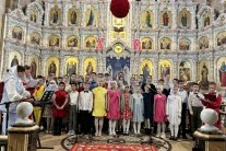 В завершение праздничного утренника настоятель кафедрального собора протоиерей Василий Бильчук поздравил взрослых и детей с Пасхой Христовой. На радостный возглас священников «Христос Воскресе!» под сводами собора прозвучал в ответ дружный хор детских голосов: «Воистину Воскресе Христос!».