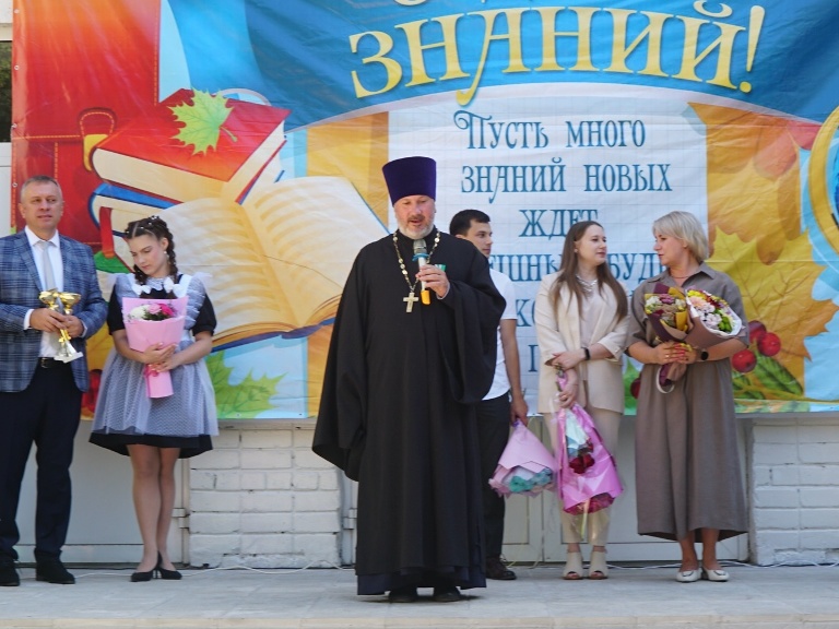 В День знаний священник принял участие в торжественных мероприятиях в МБОУ СШ №14 г. Липецка